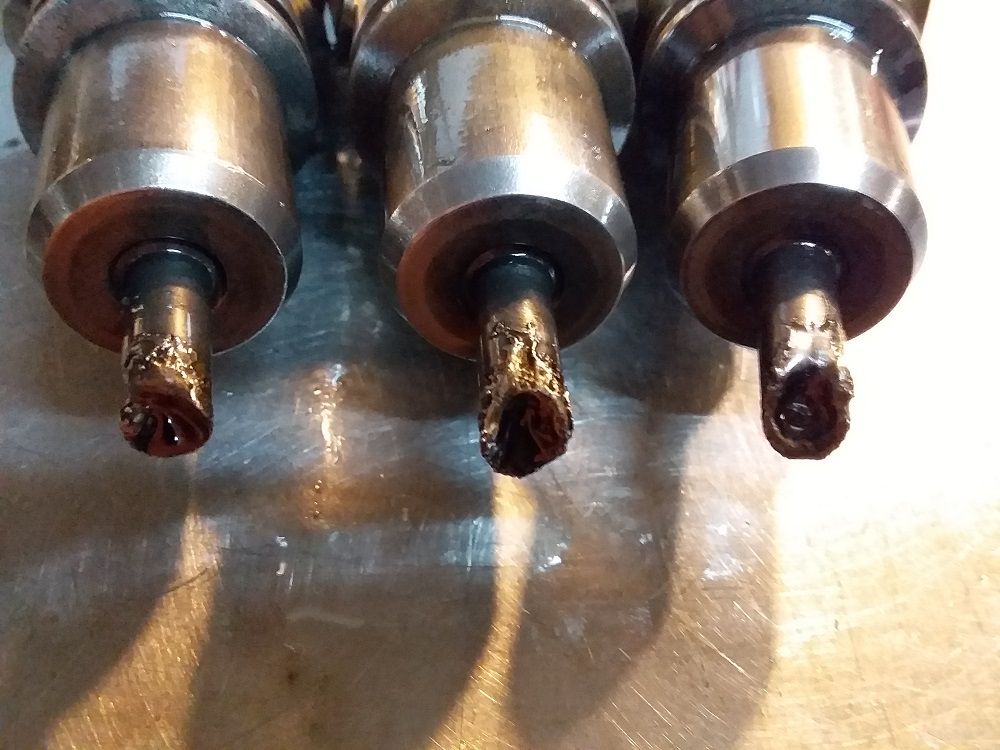 Автомобиль Фредлайнер, Freightliner Trucks, двигатель Detroit Diesel S60. Форсунки работали в двигателе без антифриза . Распылители не охлаждались, и оплавились. Расплавленный металл повредил форсунку, попав внутрь. Отремонтировали форсунки на других корпусах.